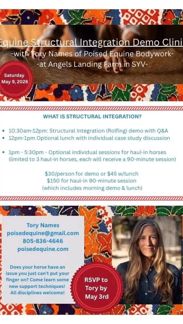 Please note that Tory is comfortable working on your horse solo after the initial visit. Do not feel you need to be present but of course you are ALWAYS welcome to join the session!